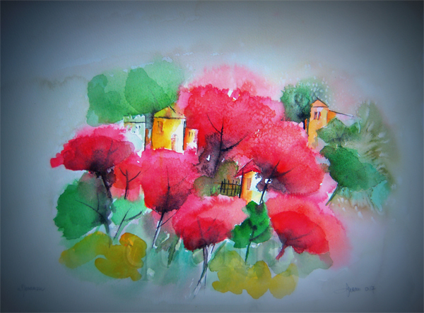 Fiori_rossi_color_di_libertà, 2020 acquerello cm. 40 x 50