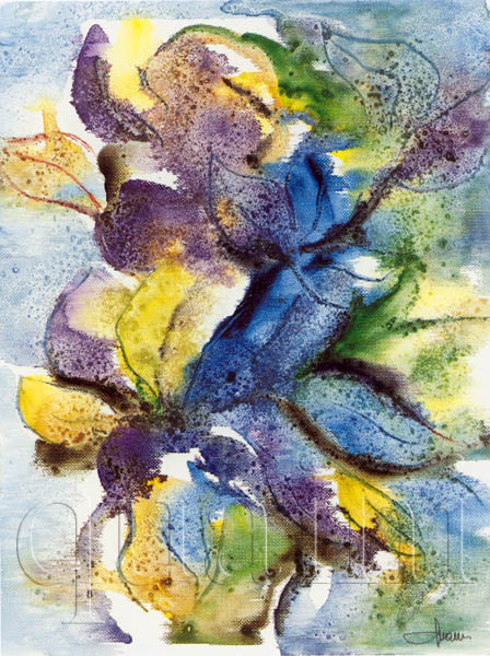 Fiori e giardini, 2003 acquerello su tela cm. 23,5 x 18